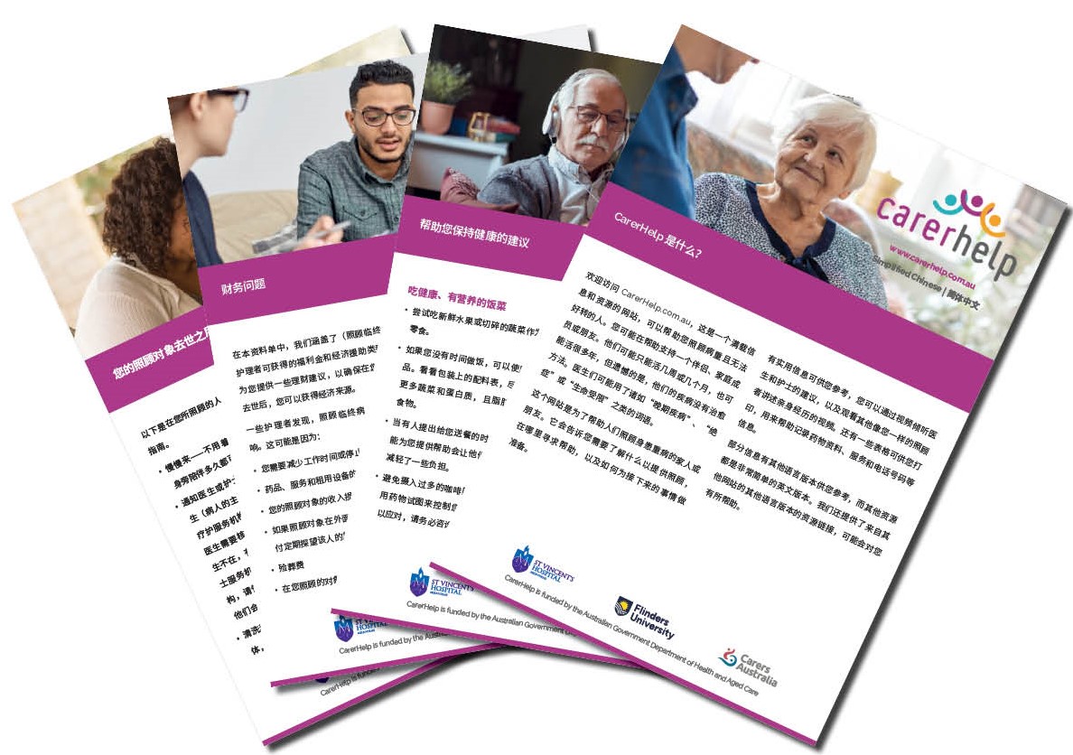 In Other Language Carer Kits – You will receive 13 factsheets/forms in the preferred language and a pack of the same resources in English which are culturally appropriate.